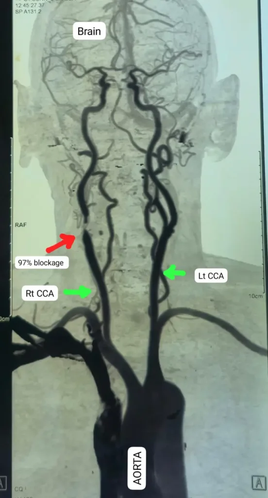 बालाघाट निवासी 70 वर्षीय मरीज को पिछले दो वर्षों से बार-बार लकवा, चक्कर, एक आंख से धुंधला दिखना और सुनाई न देने जैसी समस्याएं हो रही थीं। प्रारंभिक जांच के बाद कैरोटिड सीटी एंजियोग्राफी कराई गई, जिसमें पता चला कि मरीज की दाहिनी कैरोटिड आर्टरी में 95% से अधिक रुकावट थी। इससे मस्तिष्क को रक्त की आपूर्ति बाधित हो रही थी। सर्जरी थी बेहद जोखिमभरीडॉ. के.के. साहू ने परिजनों को स्पष्ट किया कि इस सर्जरी में जान का खतरा हो सकता है, क्योंकि ऑपरेशन के दौरान यदि कोई भी प्लाक का टुकड़ा या हवा का बुलबुला मस्तिष्क में चला जाता तो मरीज ब्रेन डेड हो सकता था। इसके बावजूद मरीज एवं परिजनों ने ऑपरेशन की सहमति दी।