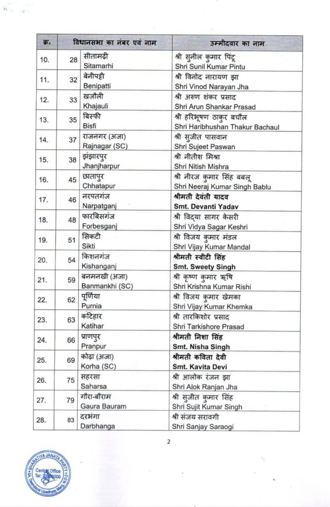 बिहार विधानसभा चुनाव 2025 : भारतीय जनता पार्टी ने प्रत्याशियों की प्रथम सूची जारी की… बिहार 14 October 202514 October 2025satyakasamnaLeave a Comment on बिहार विधानसभा चुनाव 2025 : भारतीय जनता पार्टी ने प्रत्याशियों की प्रथम सूची जारी की… बिहार / डिजिटल डेस्क / सत्य का सामना / बिहार विधानसभा को देखते हुए भारतीय जनता पार्टी, केंद्रीय चुनाव समिति ने ने 242 विधानसभा सीटों में अपने पहली सूची में निम्नलिखित उम्मीदवारों के नामों का ऐलान कर दिया हैँ…. देखे सूची… Post Views: 41