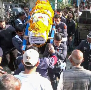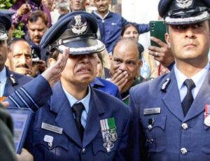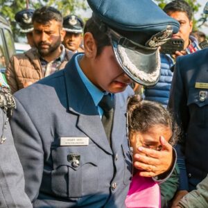विंग कमांडर नमांश स्याल को दी गई अंतिम विदाई, नम आँखो से पत्नी ने किया सेल्यूट… Uncategorised 24 November 2025satyakasamnaLeave a Comment on विंग कमांडर नमांश स्याल को दी गई अंतिम विदाई, नम आँखो से पत्नी ने किया सेल्यूट… दुबई एयर शो में क्रैश हुए फाइटर जेट तेजस के पायलट नमांश स्याल को रविवार को आखिरी विदाई दी गई. नमांश की पत्नी अफशां खुद भी विंग कमांडर हैं। उन्होंने अपने पति को नम आंखों से सैल्यूट किया। देखिए तस्वीरें- Post Views: 12