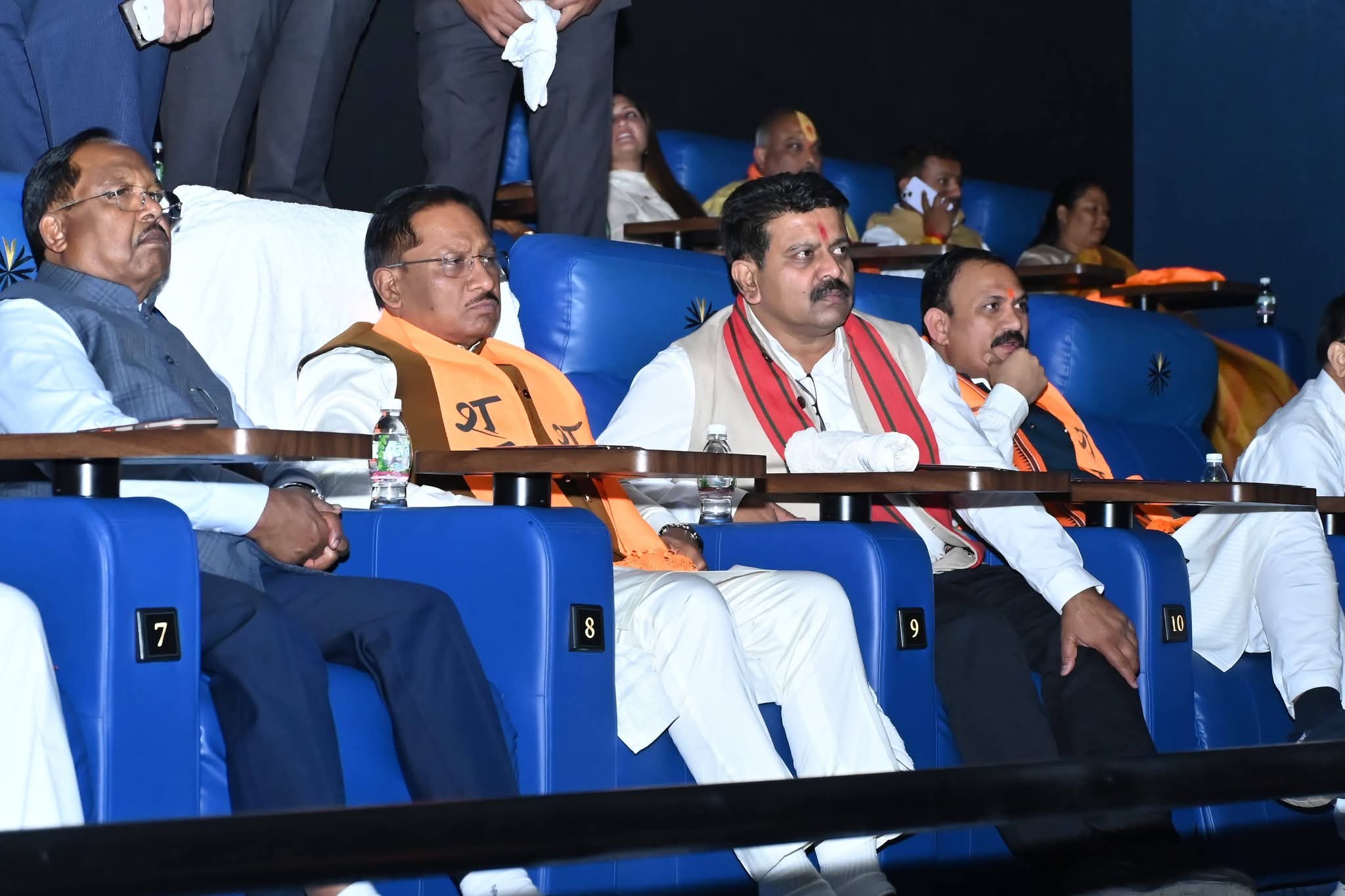राजधानी रायपुर। सत्य का सामना। राष्ट्रीय स्वयंसेवक संघ के 100 वर्ष पूर्ण होने पे बनी फ़िल्म ” शतक ” को देखने पहुँचे मुख्यमंत्री विष्णुदेव साय एवं मंत्रिमंडल के सदस्य, इस दौरान मुख्यमंत्री श्री साय ने फ़िल्म को छत्तीसगढ़ में टैक्स फ्री करने का निर्णय लिया…
