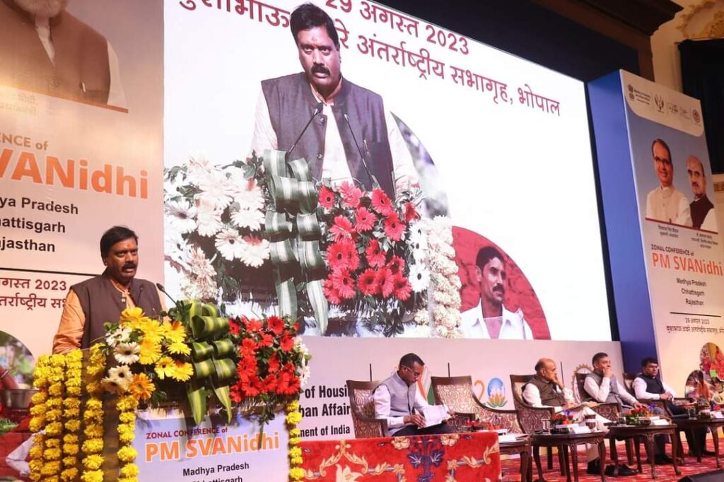 प्रधानमंत्री स्वनिधी योजना की ज़ोनल कांन्फ्रेंस (राजस्थान , छत्तीसगढ़ और मध्य प्रदेश) भोपाल में कुशाभाऊ ठाकरे अंतरराष्ट्रीय सभागार मे आयोजित की गई जिसमें मुझे छत्तीसगढ़ का प्रतिनिधित्व करने का मौका प्रदेश संगठन महामंत्री श्री पवन साय जी के द्वारा दिया गया। बैठक में केन्द्रीय मंत्री डॉ भागवत कराड़ एवं पूर्व संगठन महामंत्री श्री अरविन्द मेनन जी प्रमुख रूप से उपस्थित रहे। इस योजना में सड़क किनारे पर रेवड़ी,ठेले पर, टोकने में सब्जी,फल,चाय ठेला या कोई भी काम करने वाले को 10000/-का लोन बीना किसी ग्यारंटी के शीघ्र मिल जाता है बैंक को इस लोन को प्राथमिकता के आधार पर देना है ताकि गरीब व्यक्ति को 10%रोजाना के ब्याज से ना लेना पड़े ।