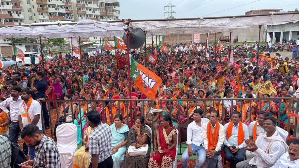 गोगांव :- सत्य का सामना/ गोगांव में भाजपा के प्रवेश उत्सव के दौरान सैकड़ो की संख्या युवा ओर माताओं ने प्रवेश किया हजारों की संख्या में भीड़ शामिल हुई इस मौके प्रदेश अध्यक्ष अरुण साव, दक्षिण विधायक बृजमोहन अग्रवाल, ओमप्रकाश देवांगन सहित सैकड़ों की सख्या में लोग उपस्थित हुए…