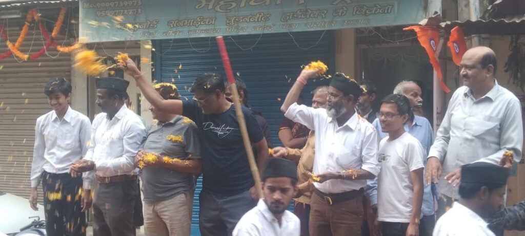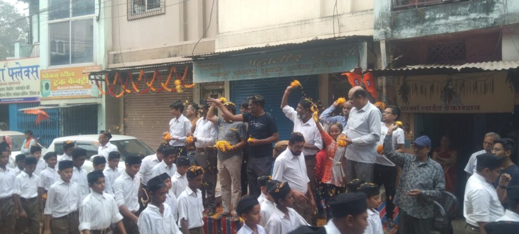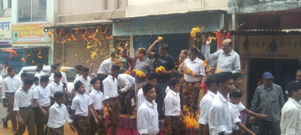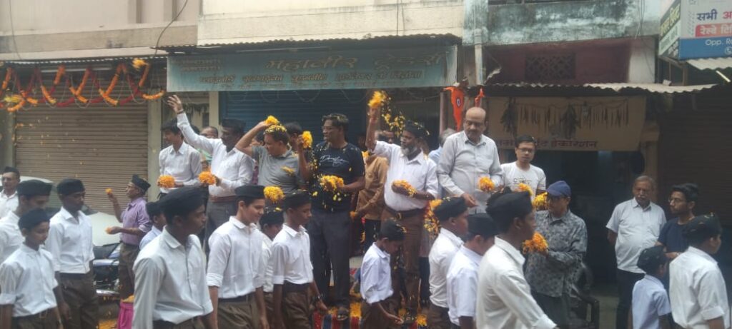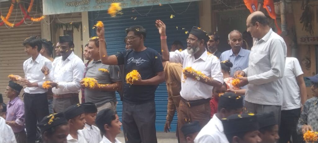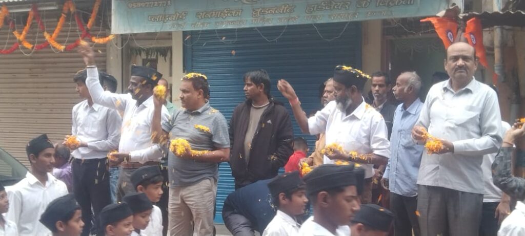 राष्ट्रीय स्वयं सेवक संघ द्वारा आयोजित बाल स्वयं सेवकों के पथ संचलन का छत्तीसगढ़ मुस्लिम पसमांदा समाज द्वारा गिरी चौक पर प्रदेश अध्यक्ष रिज़वान पटवा जी के नेतृत्व मे पुष्प वर्षा करराष्ट्रभक्त बाल स्वयं सेवकों का तहे दिल से इस्तक़बाल किया गया..