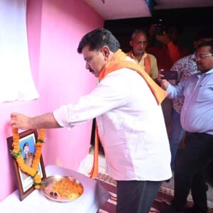 कवर्धा/सत्य का सामना/ कवर्धा के पांडातराई थाने में पदस्थ आरक्षक नेतराम धुर्वे के सड़क दुर्घटना में निधन के सूचना मिलने के बाद उनके निवास स्थान पहुंच कर उपमुख्यमंत्री, गृहमंत्री श्री विजय शर्मा ने श्रद्धा सुमन किया घर वालो ढांढस बढ़ाया उक्त अवसर अनेकों ग्रामीण जन वहा मोजूद रहे ….