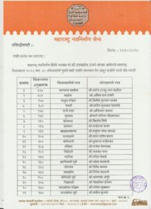 महाराष्ट्र/सत्य का सामना/महाराष्ट्र नवनिर्माण सेना (मनसे) ने आगामी विधानसभा चुनाव को देखते हुए अपने उम्मीदवारों की पहली लिस्ट जारी कर दी है इस लिस्ट में 45 उम्मीदवारों के नाम है मनसे प्रमुख राज ठाकरे के पुत्र अमित ठाकरे को उनके गृह क्षेत्र माहिम विधानसभा क्षेत्र से चुनावी मैदान में उतारा गया है पूरे 45 उम्मीदवारों की लिस्ट इस प्रकार है …