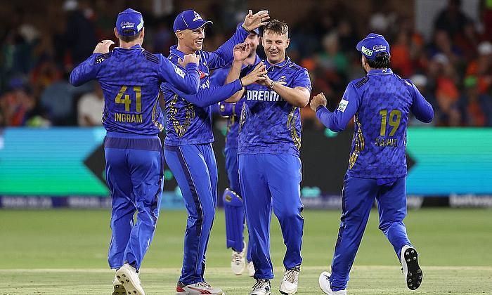लक्ष्य का पीछा करने उतरी सनराइजर्स ईस्टर्न केप शुरू से ही दबाव में रही, ट्रेंटबोल्ट और कागिसो रबाडा ने कसी और धारदार गेंदबाजी की, पॉवर प्ले में दो विकेट लिए सनराइजर्स को बैकफुट में ला दिया वहा से टीम अपनी लय प्राप्त नहि कर पाई और उसके लगातार अंतराल में विकेट गिरते गए, 105 में पुरी टीम आउट हो गई …